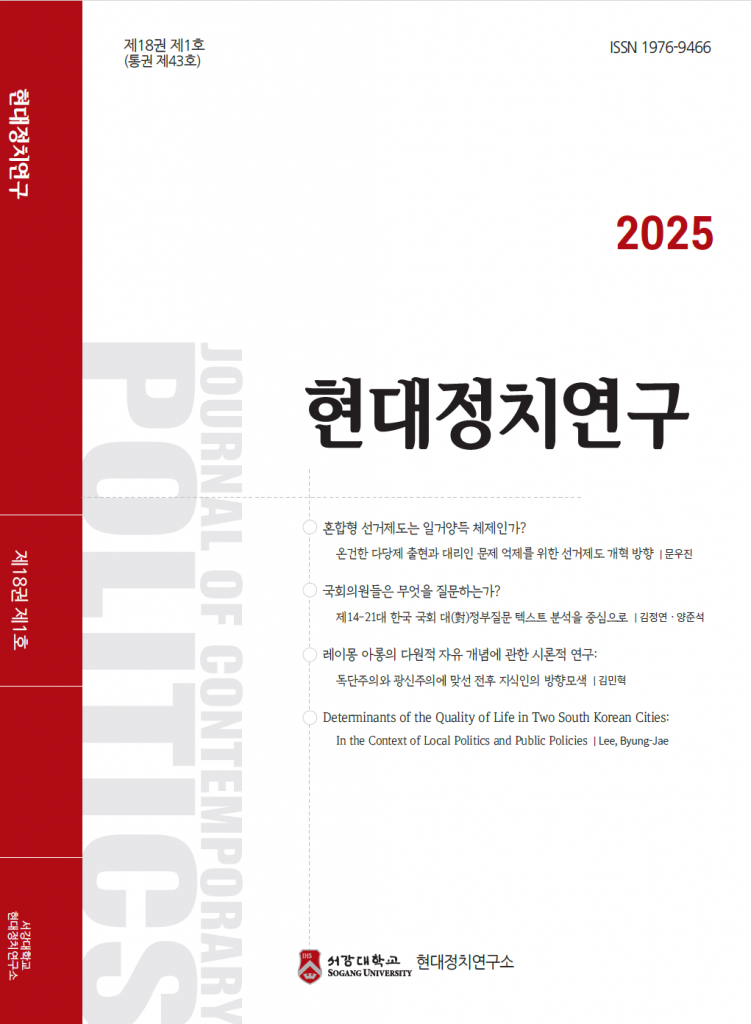이관후. 2019. “연동형비례대표제와 주권의 재구성: 한국선거제도 변화에 대한 정치철학적 고찰.” 『현대정치연구』 제12권 제1호, 146-175.