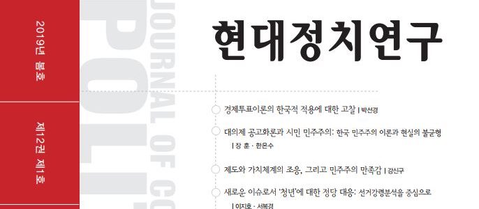 - 대의제 공고화론과 시민 민주주의: 한국 민주주의 이론과 현실의 불균형(장훈, 중앙대; 한은수, 중앙대)