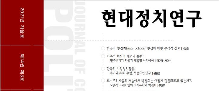 - 1. 한국의 ‘반정치(anti-politics)’ 현상에 대한 분석적 검토(박상영, 한국교원대)